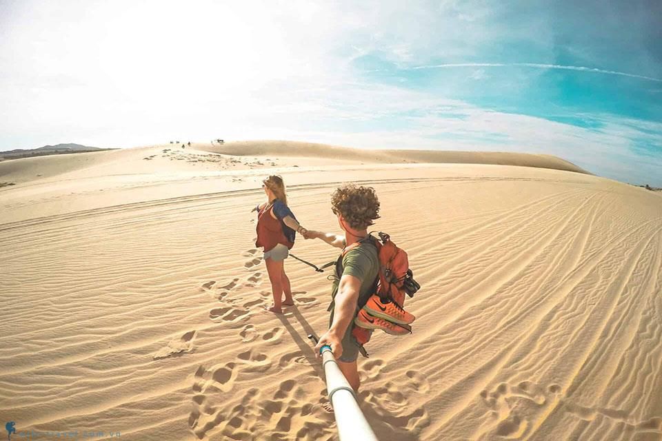 Located about 55km north of Mui Ne town center, the Bau Trang white sand dunes are a destination that makes thousands of tourists exclaim, "Am I really in Vietnam?" The pristine white sand dunes, stretching for dozens of hectares, interspersed with clear blue lakes, create a wild landscape like a miniature Sahara desert.
